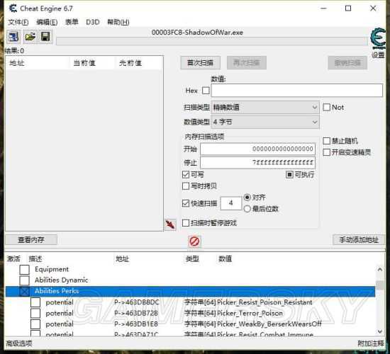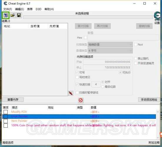 首先,打开CE,载入插件,进入游戏,在CE选择中土。