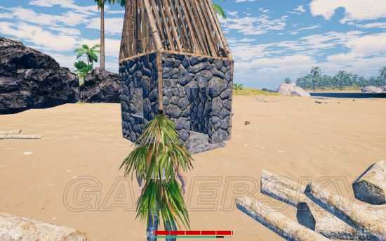 四角摆四个端木棍,再用绳子把四个节点绑起来,得到地基标记,R键和鼠标滚轮可以做成斜的。