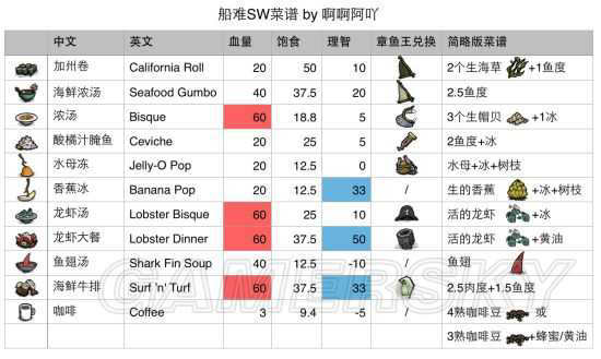 因为船难更新频繁,网上很多关于料理的资料不准,所以自己总结了这份最新版食谱