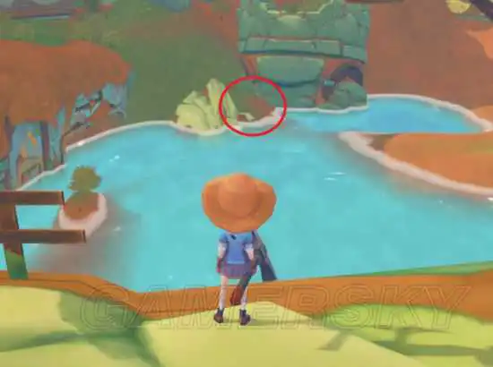 红圈地方的石头之一。现在让我挖完了还没刷新,看不见。危险废墟下车的湖。