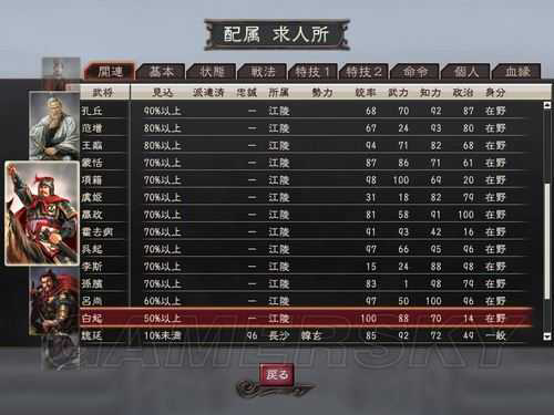 4.登人成功率与求人所里面的武将相性,是否君主身份无关(智力100相性1的董胖胖君主跟智力100相性75的猪哥小弟都是一样的)
