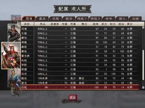 势力情况不变,刘备猪哥情况跟上面的一样,白起相性变成1,成功率变成0了...