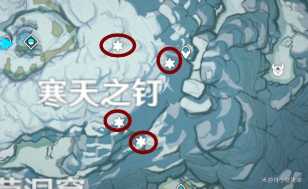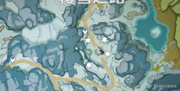 下图星星标记为四个深赤之石具体位置。(有一个需要击破石头才可以看见)
