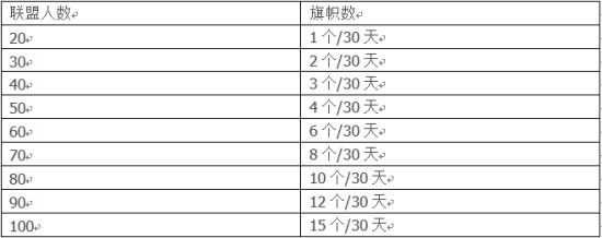 不同人数上限的联盟,需要的“联盟旗帜”数量不同,最大联盟为50人。