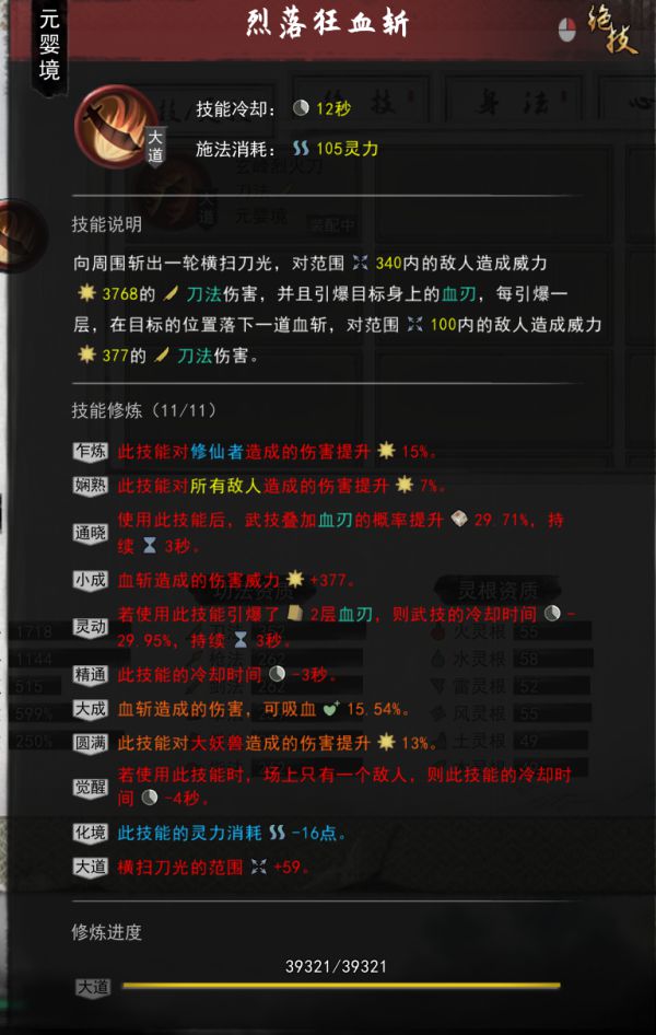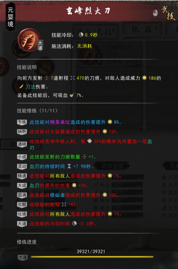 血灵精通,心法的加持,再加上绝技附带的减少CD,可以实现绝技CD1秒。在武技无CD与绝技血刃无限触发的情况下,1秒钟可以输出400-500次,身法的眩晕和减伤可以提供良好的输出环境
