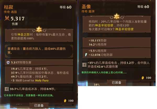 词缀优先选择防御(加成所有防御,包括物理和元素防御),任一元素防御, 格挡率(40%封顶),闪避率(40%封顶),暴击伤害(300%封顶),暴击率(40%封顶),圣物能量生成,圣物能量消耗,以及最最最重要+3级或者30%伤害的【光明之矛】【神圣之怒】【黑暗之矛】【混乱重击】【千伏爆发】(其他技能不考虑),可遇不可求!