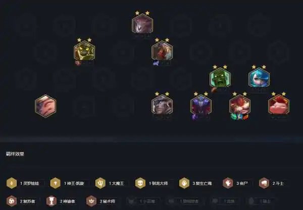 阵容关键羁绊:3丧尸+3复生+法系输出(大头最优,提莫大眼次之)。