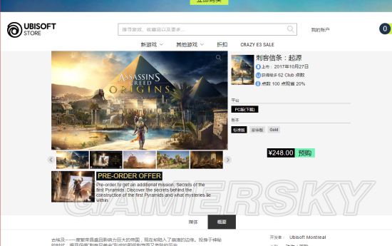 部分人的uplay客户端没有商店入口,所以这里就讲一下网页购买的方法。