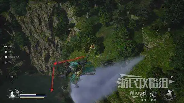在我们刚打败王灵官获得筋斗云的时候,直接使用筋斗云跳到正下方的小河,落地就能触发与跳浪蛟的BOSS战。