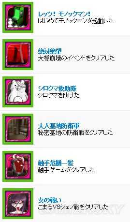 杀死1000头黑白熊无法在一周目完成,需要二周目,第三个则是击倒过所有种类的黑白熊敌人,在一周目中后期自动解除。