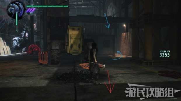 首先靠近入口,然后召唤Nightmare,隐藏关卡在壁架上,就在蓝魔魂石碎片(蓝色箭头所示位置)的正上方。