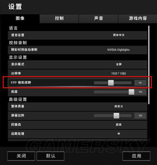 先说FOV(视野范围),有的玩家在进行游戏设置的时候都把FOV默认拉到最高的103,这样确实可以左右范围上能够看到更多。不过在进行横向拉伸之后,我们所看到的图像都已经变形了,这也是为什么会头晕的原因之一。这里K哥建议大家将FOV调到90,K哥在游戏里进行了测试,在TPP模式下进行视角切换,90的FOV在来回切换的时候变化几乎没有,而103的FOV会明显感觉到画面被拉宽拉远了。