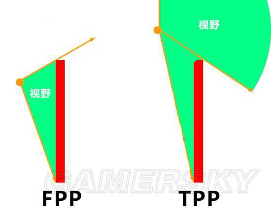 TPP是以一个人物模型头部上后方的一个点进行视野观察的,相对来说能够获取到更多的视野信息同时还不用暴露自己的位置。