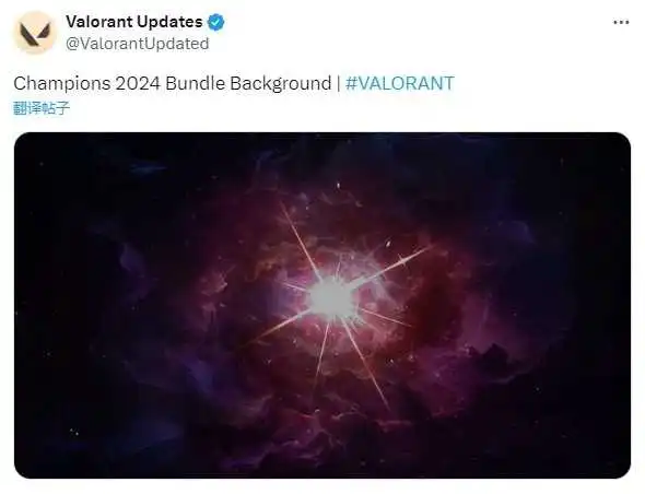 据瓦罗兰特外网推主ValorantUpdated爆料,之前解包发现的图片“supernova2024”确定是2024冠军皮肤的背景