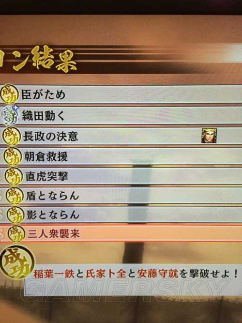 10和11两项任务几乎同时发生,我一开始试出现小问题,第一次时我先击败美浓三人众,结果失败... 第二次时我先击败光秀他们,但是美浓三人众其中一人不小心被大众脸补刀= = 也没拿到... 第三次我速度比较快织田本阵开门时就跑去堵光秀和胜家,打完后一开任务表就到手了,但照理来说那我第二次就该到手了,但我第二次打完光秀他们开任务表却是没有的... 可能我看漏了什么