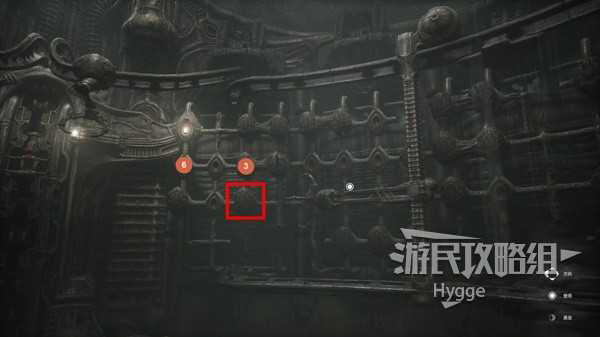 来到二层后与中间的控制台互动可以看到一段演示,得知前方高处的爪子可以从旁边架子中的亮光位置抓取物品。