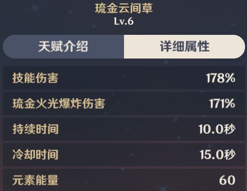 固有天赋1:宵宫一轮普攻耗时3.03秒,共7次普攻判定,实战中4.45秒即可叠满,折算E期间获得15.6%火伤加成。但是大招不锁面板,通常只能吃到2段。