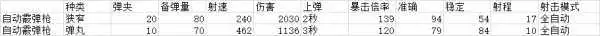 弹丸:缺点太多不建议使用。8倍射速伤害只有四分之一,只能打打无甲目标了,弹匣小很容易打空备弹,需要配合各职业的弹匣技能使用。