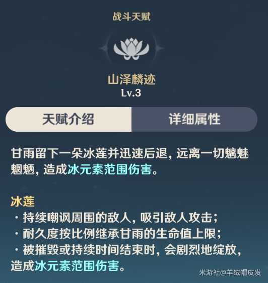 9. 关于甘雨的元素战技「山泽麟迹」,下列说法错误的是【施放「山泽麟迹」生成的冰莲只会对周围的敌人施加冰元素附着,不会造成伤害。】解析如图