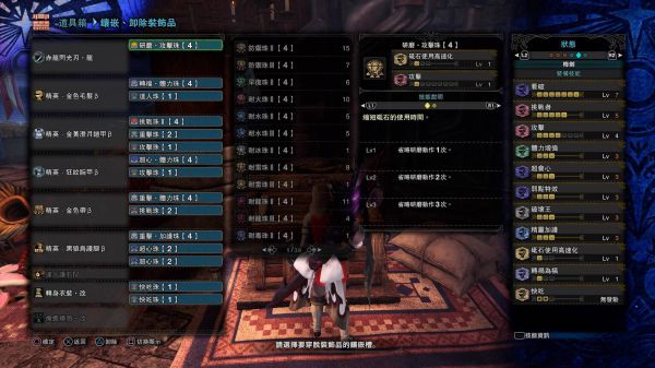 大致上与太刀装备相近,飞燕与耐冲个人觉得十分重要。