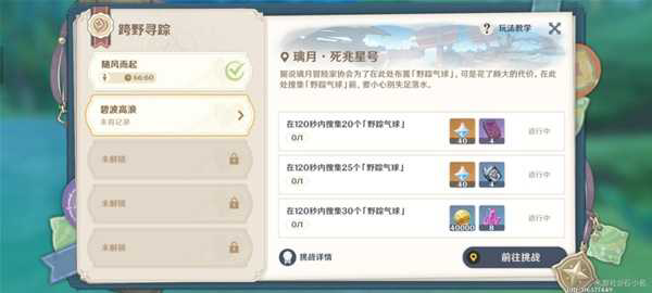 在120秒内收集30个[野踪气球],奖励: 4万摩拉+精锻用魔矿×8。
