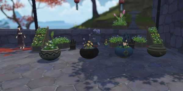 1.首先还是选对花盆,记得和柴染对话完后选花盆,而且如下图会有四个花盆,前面三个有花的都是我们之前3天做的,我们应该选择那个空的花盆来完成今天的插花任务