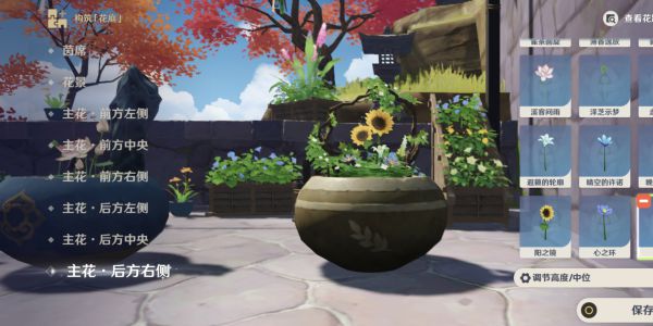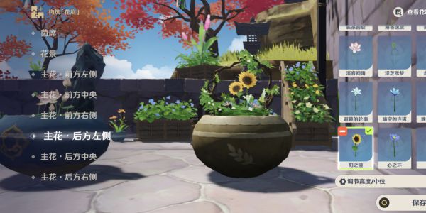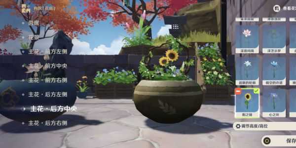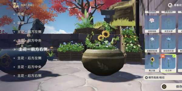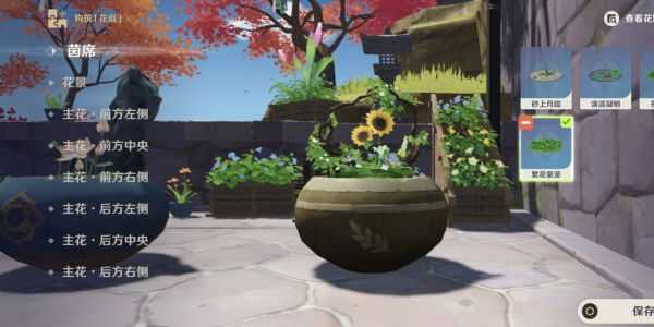 上述的花材选取步骤都选完后,点保存按钮即可完成盆景摆放任务。