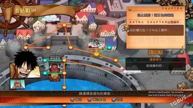 1:开始游戏后通关路飞篇的顶点战争,不要在意特殊挑战达成。通关后解锁其他模式和白胡子篇。