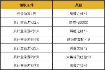 - 活动期间,累计登录七天即可获得纠缠之缘*10等奖励!