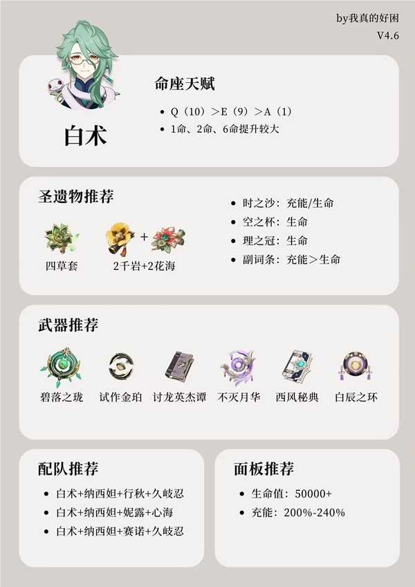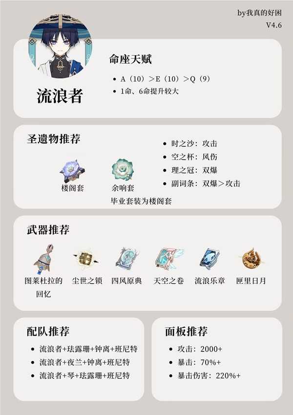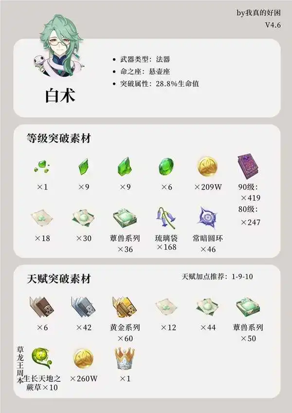 《原神》4.6下半卡池5星角色为白术与流浪者,很多玩家想知道这两位角色要怎么养成,下面请看由“我真的好困t”带来的《原神》4.6白术与流浪者养成一图流,含白术与流浪者突破材料一览,希望大家能够喜欢。