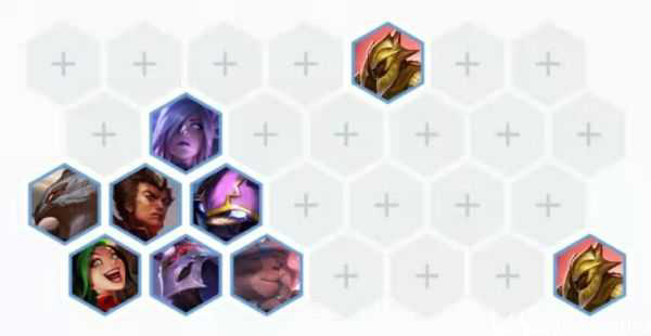 神射的站位还是很重要的,首先是3个神射的站位是固定的,烬站中间提供基克效果,水银金克斯站底角,提莫站外侧因为提莫的射程短站里面很容易假赛,这也是提莫有一点不适合当主C的原因。出神射外几个神盾报团取暖,凯南最好有一个传送门可以稍微防一下刺客,后期有永恩顶到前排沙兵的位置吸收第一波伤害。但是这样站位会被卡特完克不过这也是没有办法的事情,如果后期决赛圈打三国可以再考虑分散站位。