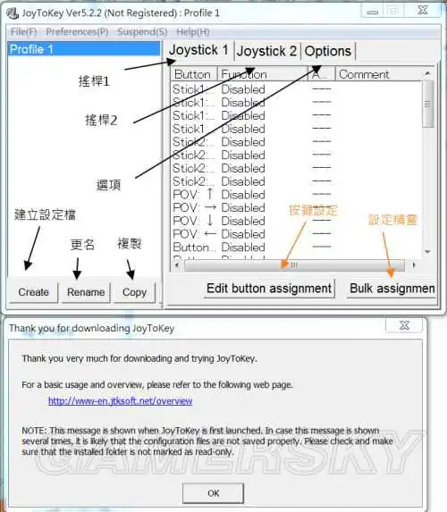这代表的是您的按键或是类比摇杆对应joytokey的项目如下图