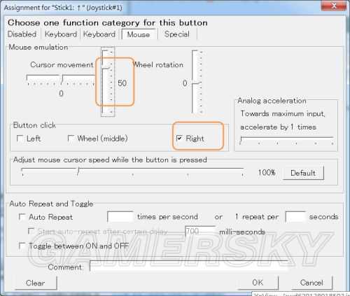 如果我想把左类比模拟成轩六的转动镜头的话就要设定成往上推模拟滑鼠往上并且是按住右键