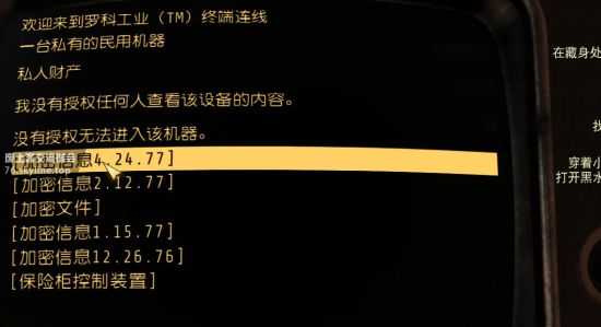 终端左边下面有个保险柜,解锁后也有很多破坏者的工作密码,这里也是要选择带任务标记的那个。