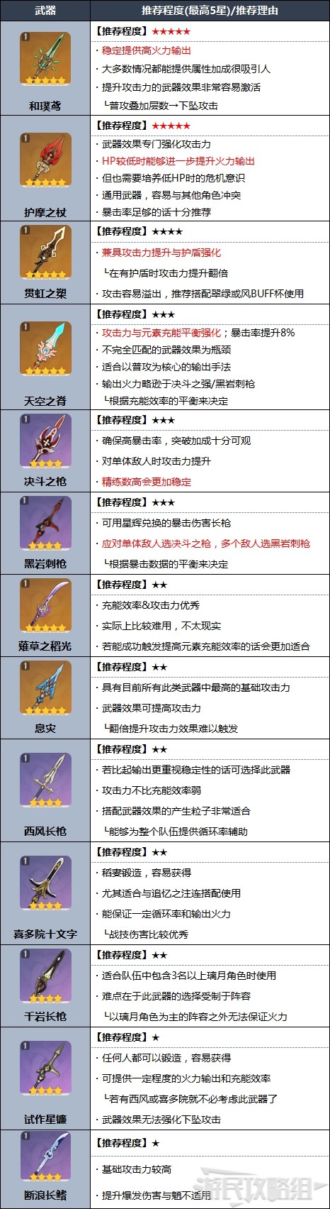 - 推荐武器:和璞鸢、护摩之杖、天空之脊