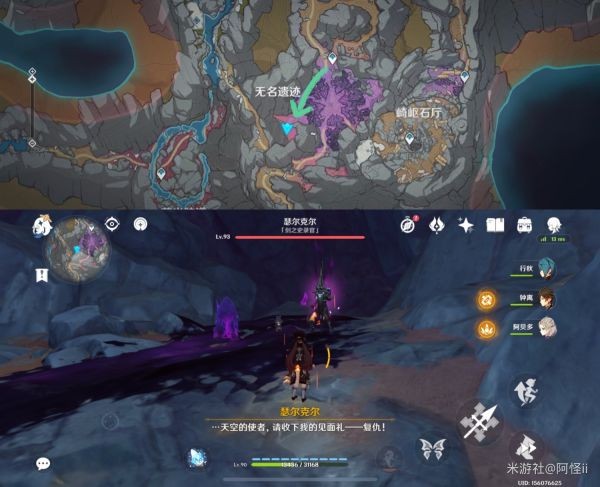位置四:前往荧光狭道传送点,按照我的路线走即可找到“海尔迦”,击败他即可获得渊青宝珠*1