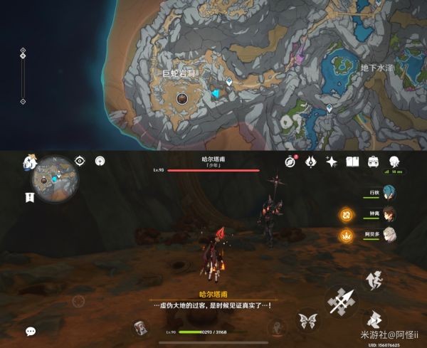 位置二:前往巨蛇岩洞传送点,直接往最底部飞去就能看到“哈尔塔甫”。击败他即可获得渊青宝珠*1