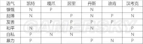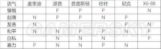 但是作者这个分类稍微有点迷,刻薄(mean)很好理解就是指讽刺选项,自私(selfish)指的基本就是办事先要钱这类的,然而这个友善(nice)和和平(peaceful)到底有多大区别我也不知道。。