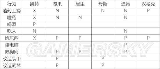 凯特比较特别,戒毒前后她性格会变,之前嗑药加好感,戒毒后就减好感了,其他也同理,所以她有X选项