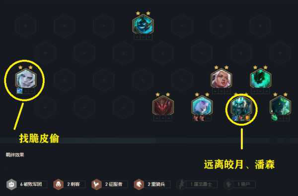 这套阵容非常惧怕刺客阵容,遇到4刺或6刺躲避皎月、佛耶戈、妖姬。