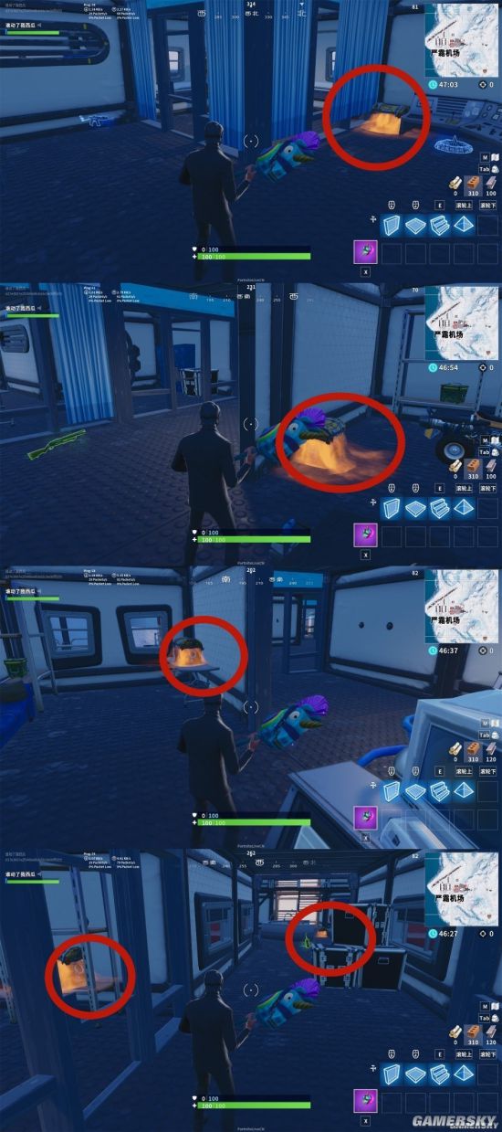 首先是两个停机仓,除了地面刷新物品,每个仓都有两个宝箱刷新点位。