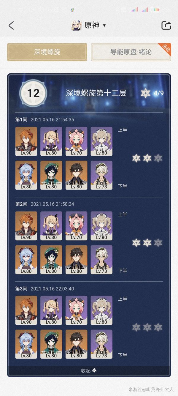 上半层有雷哥的存在,所以必须拿冰是最优解,我的重云练度太低,所以带上了芭芭拉和迪奥娜双奶妈,这样虽然过去了但是伤害有点低,所以还是推荐77(当天下午刚抽到),这样还能带一个副C加快进程。