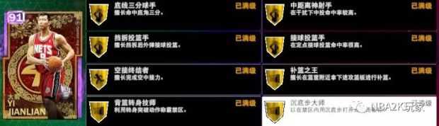 13+4的徽章组成,外线投射徽章可以补一补,远距离射程无限,底角三分和持球防守精英必补。