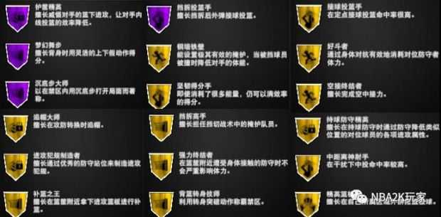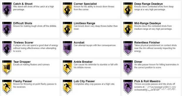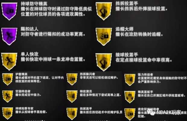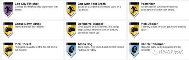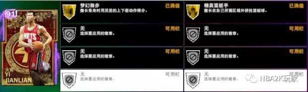 13+2的徽章组成,远距离和射程无限的组合实在是舒服,这张卡由于比较全面,徽章补足范围非常广,底角三分,持球防守和挡拆躲闪者必补,其余大家看自己的需要。