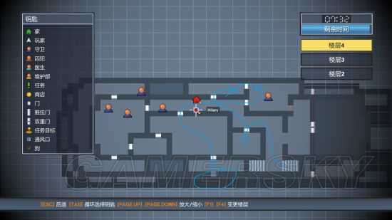 三楼篮圈就是逃跑点,键号是停滞点,到窗口E键过关
