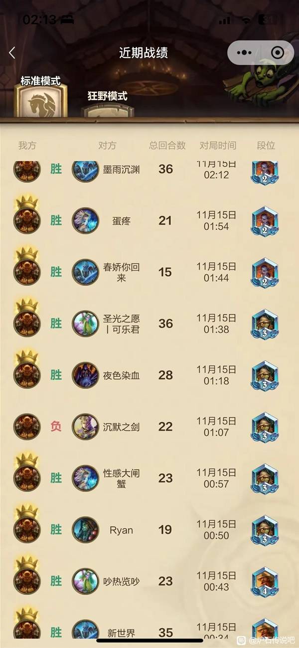 今天刚打得,唯一输的一把开门龙牧自己手滑加尔鲁什的礼物乱斗选成了盾档,不然也赢了。