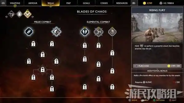 【狩猎杀手】:直接点到满级。此技能可以让奎托斯同时攻击3个敌人,或是攻击1个大型敌人的3个部位。远距离攻击远古尸鬼或其他敌人时都非常好用。