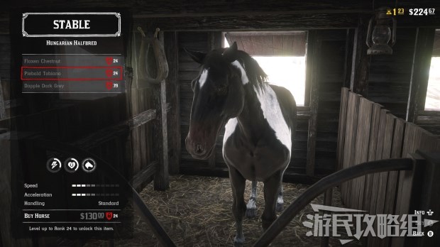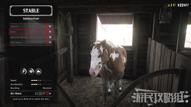 尽管这匹老实憨厚的马不是最快的马,但各项能力都还可以。美国花马的耐力绝对是一流的,如果你不在乎它那低于平均水平的加速能力,则可以选择托比亚诺或奥佛罗这两个毛色(均在21级解锁)。