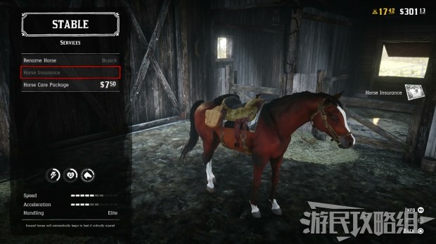 顾名思义就是给马匹上个保险,当你的马匹死亡时,保险会让它立刻复活。注意:如果你不小心射杀了你自己的马匹,那保险会向你收取一定的复活费用。