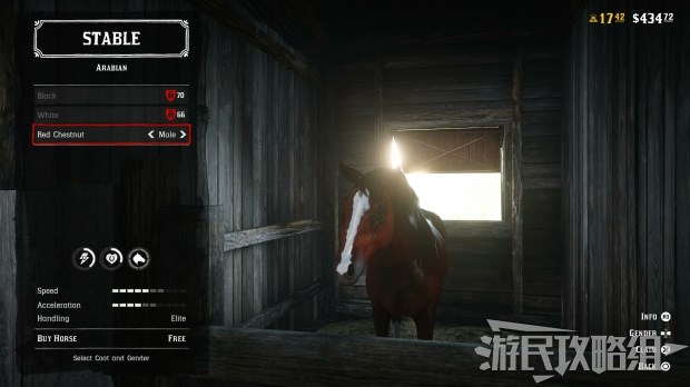 PS4玩家可以获得额外的免费马匹。这匹红色阿拉伯马可在“菁英”一栏里找到。如果你的马匹存放槽不够用了,可以花100美元购买一个。